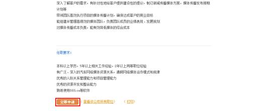 第三步:選擇自己想要應聘的職位,然后點擊“立即申請”按鈕,就會進入如下展示的頁面,接著再按照下圖的操作步驟提示去完成“申請”工作即可。