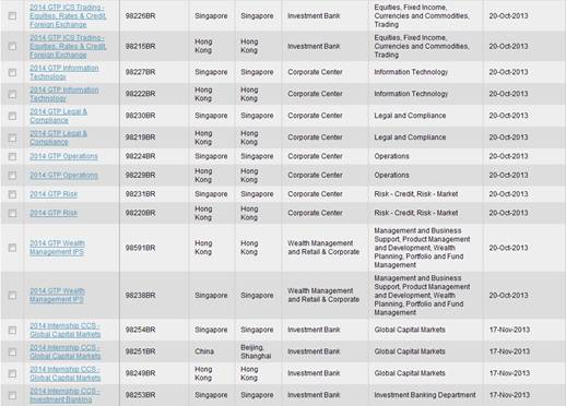 以下是部分2013年瑞士銀行在中國校園招聘中的招聘職位信息,包括職位名、工作地點、工作職責、職位要求等,有意進入瑞士銀行工作的同學可以參考以下要求有意識地提升自己的專業技能和職業素養,以便順利通過瑞士銀行的層層篩選。