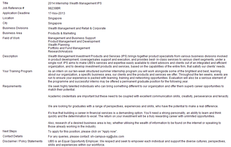 3.1 瑞士銀行校園招聘崗位 & 要求