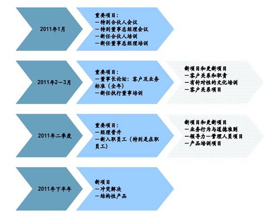 實施本報告的建議需要進行大量培訓。部分情況下這些培訓是全公司范圍的項目,部分情況是部 門層面和針對不同業務的項目。全公司的培訓項目應涵蓋所有員工。對于部門層面或針對不同業 務的項目,也應涵蓋大部分受眾。例如,我們預計證券部及投資管理部在全球范圍的2,100 多位專業人員將接受有關結構性產品的高專業性及高強度培訓。