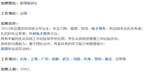 1、2013年應屆本科或研究生,專業不限,經管、物流供應鏈、土建工程、計算機及小語種專業優先;