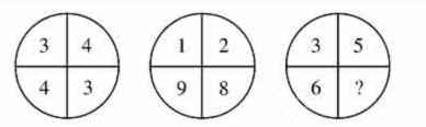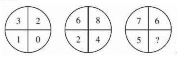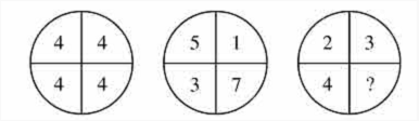 解答:前兩個圖形都是左上角減去左下角等于右上角減去右下角,設未知數為X,則7-5=6-X,可知X=4。因此答案為D。