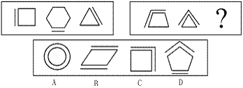 解答:因為在第一套圖形中多邊形均有一條邊雙線,在第二套圖形中均有二條相鄰的邊雙線。因此正確答案為C。