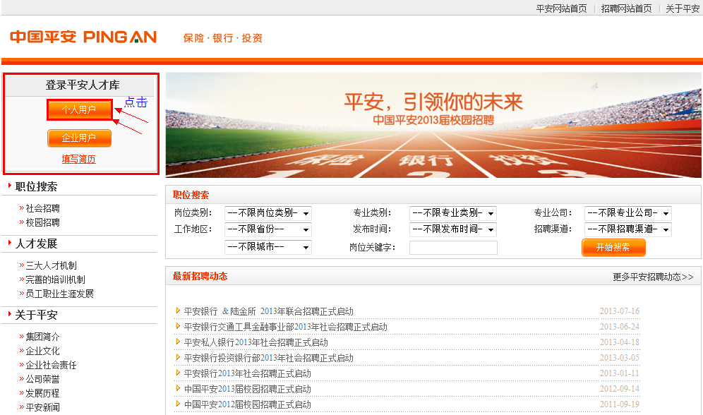 第一步:登錄平安保險招聘網站https://job.pingan.com/,進入以下頁面