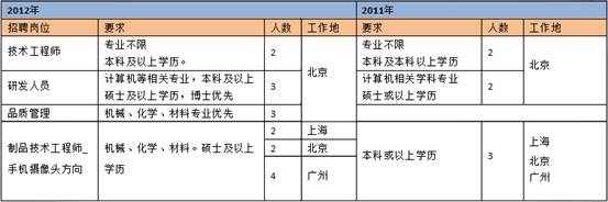 表二:為只在 2011年方正校園招聘中出現的招聘崗位