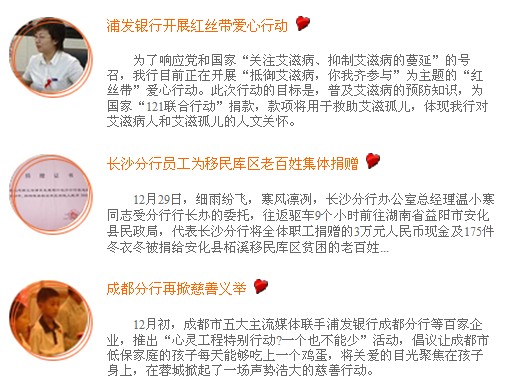 5、充滿愛心、融入激情,這是浦發銀行員工奉獻社會的準則。