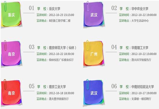 注意:2014年校園宣講會未必如此,因此請經常關注應屆畢業生網宣講會查詢系統,以便得到最新最準確的蘇寧電器校園宣講會信息。