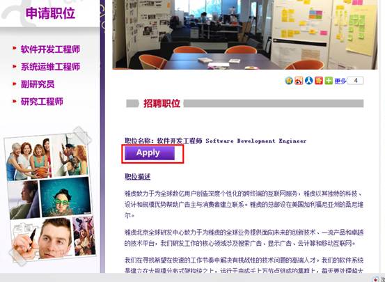 第二步:點擊“申請職位”選項,進入如下的“招聘職位”頁面