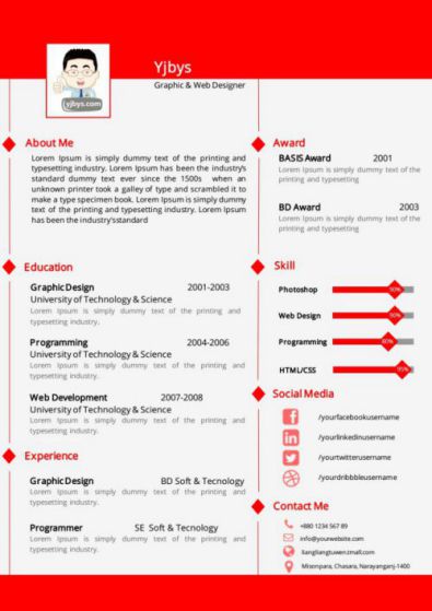 A213英文紅,藍,深藍簡歷模板