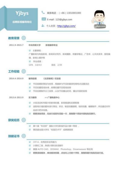 A589常用黃綠,淡藍,粉橙簡歷模板