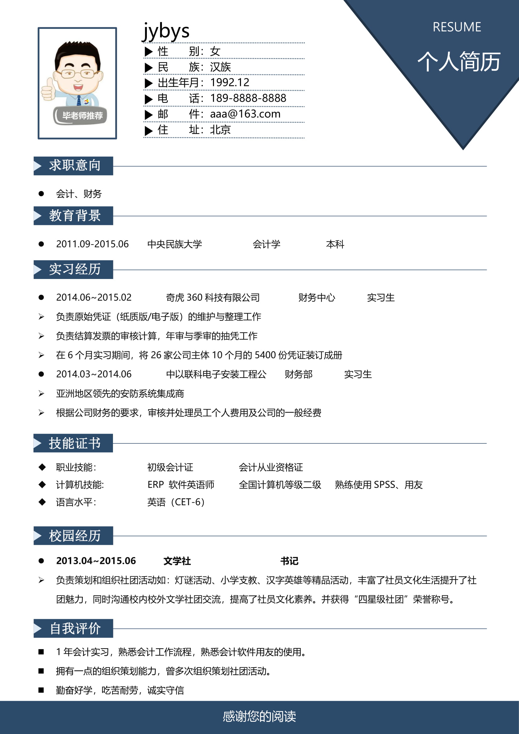 A601簡約深藍,淺綠,橙色簡歷模板