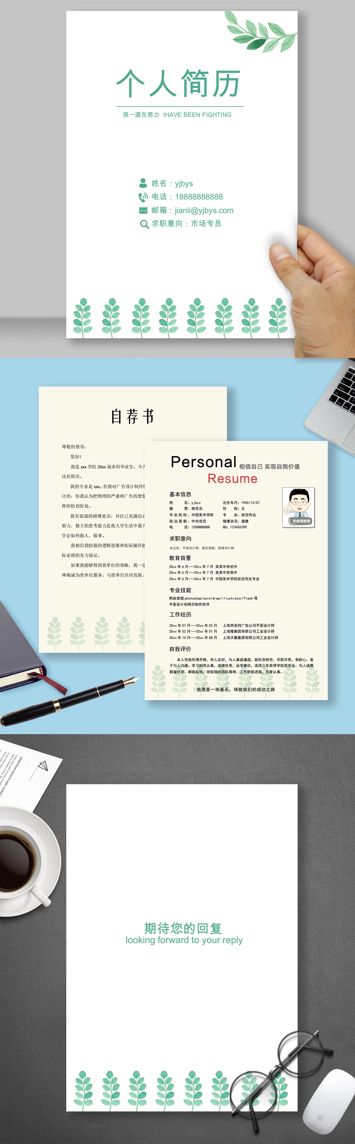 A472簡約綠,褐,藍簡歷模板
