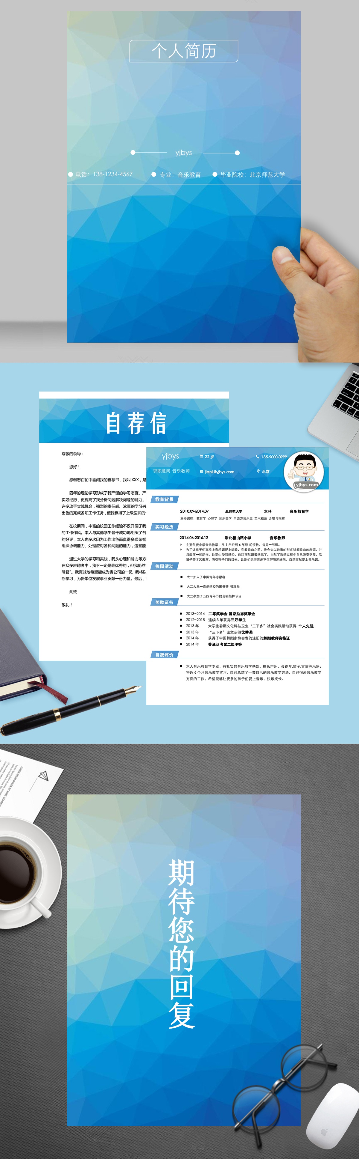 A421簡約綠,褐,藍簡歷模板