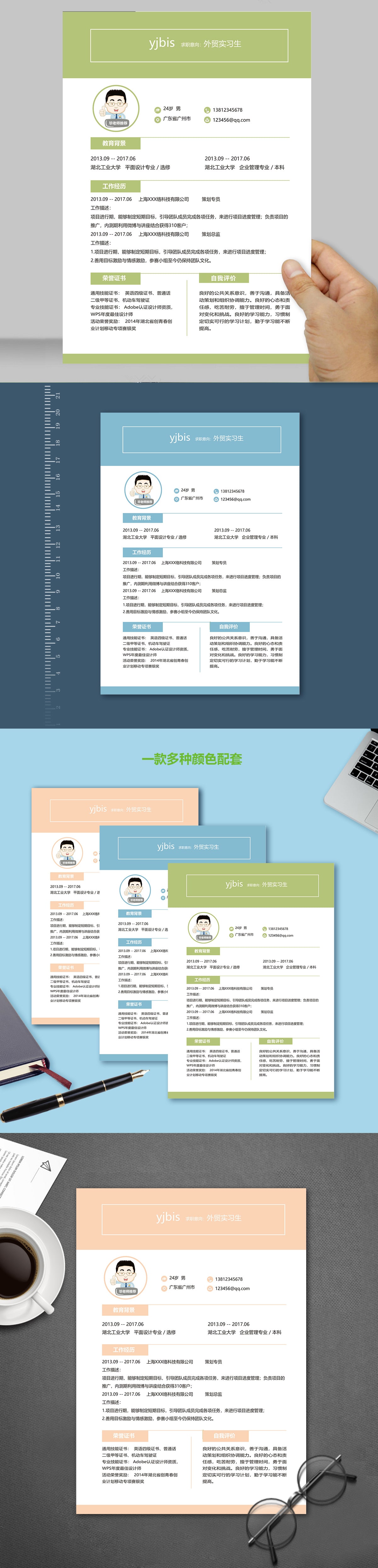 A433簡約褐,藍,綠簡歷模板