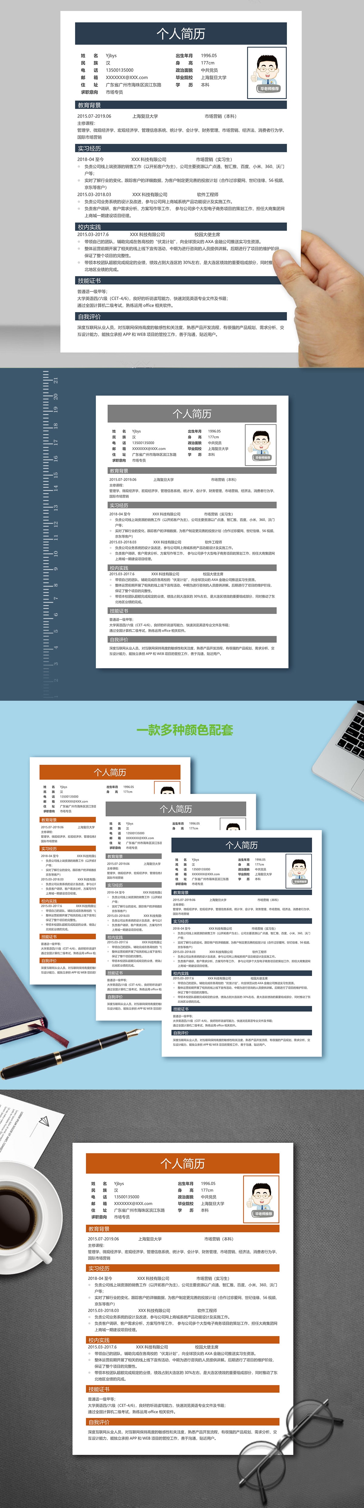 A614簡約灰青,灰藍,灰橙簡歷模板