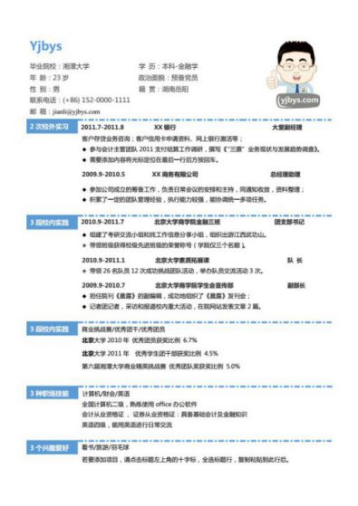 A211英文青,黃,藍簡歷模板