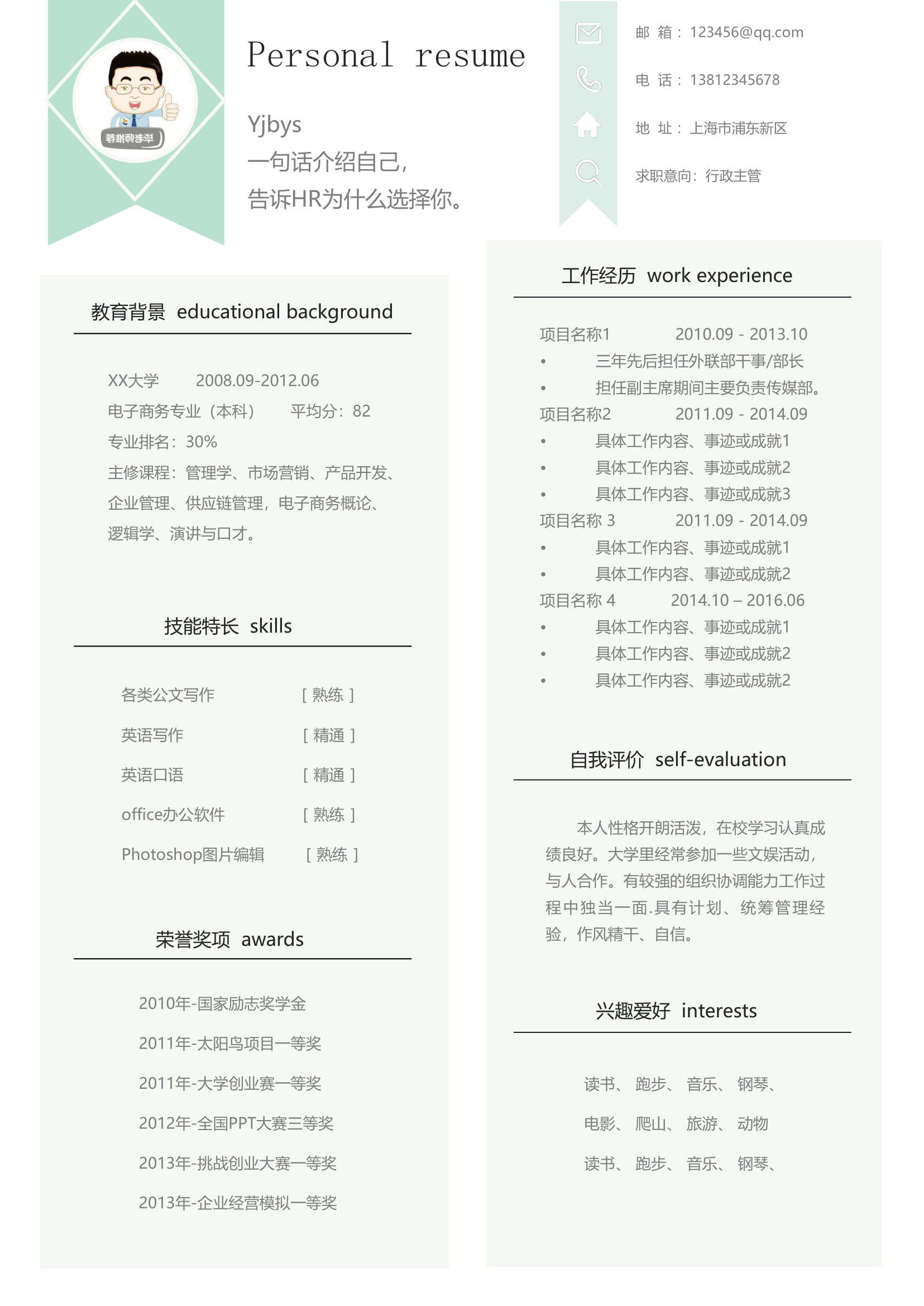 A594常用淡綠色,淡藍色,淡橙色簡歷模板